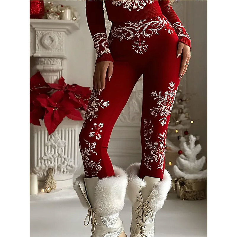 Women's Leggings Vacation Vintage Ethnic Style Full Length High WaistPantsUgly Christmas Graphic Snowflake 3D Print Quick Dry Breathability Soft Stretchy Outdoor Home Causal Red Blue Purple Green