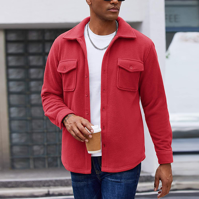 Men's Lightweight Jacket Casual Jacket Work Jacket Daily Outdoor Pocket Spring Fall Plain Streetwear Stylish Turndown Regular Red Jacket