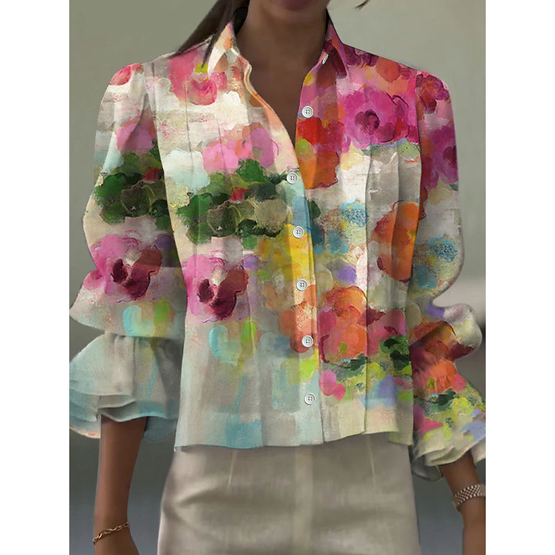 Women's Shirt Floral Graphic Elegant Bohemia Vintage Long Sleeve Regular Tops Daily Work Holiday Ruffle Pink Summer Spring