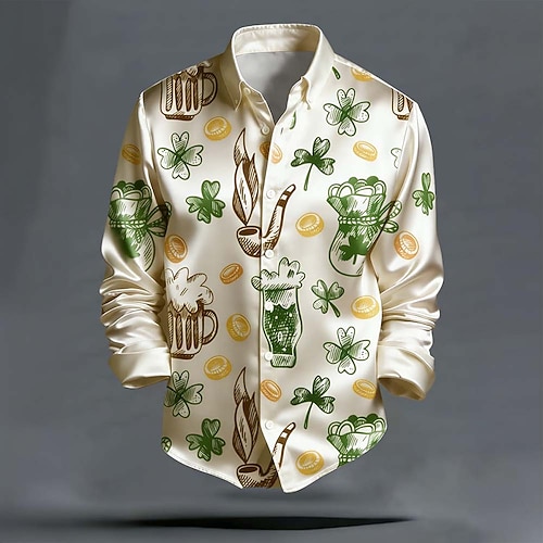 camicia serafino da uomo per la festa di San Patrizio t-shirt grafica trifoglio bandiera nazionale festa di San Patrizio abbigliamento stampa 3D quotidiano stampa abbottonata a maniche lunghe per la