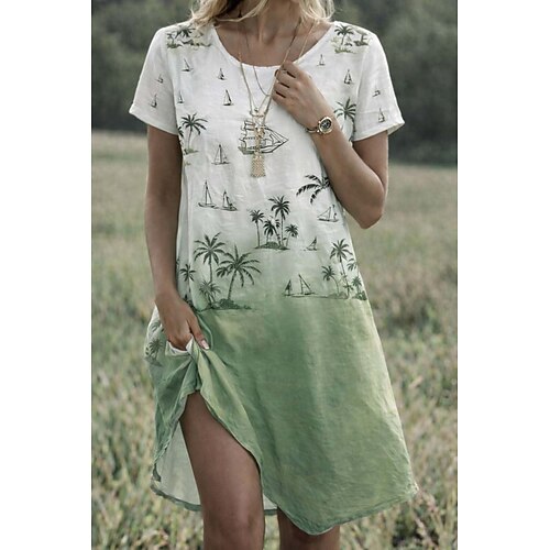 Per donna Mini Abito Vestito T-Shirt Abito a trapezio Abito Estivo Casual Quotidiano Spiaggia Ferie Vestibilità comoda Tropicale Manica Corta Girocollo Blu Verde Estate Primavera