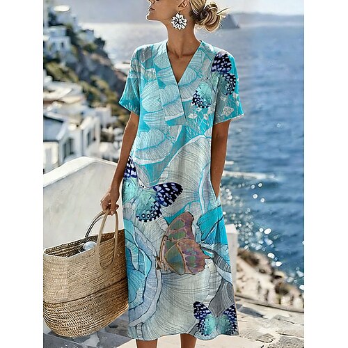 Per donna Abito Midi Vestito Estivo Vestito Casual Vacanza Casual Spiaggia Spiaggia Feste Vestibilità comoda Grafico Foglia Geometrico Manica Corta Scollo a V Blu Giallo Viola Verde Estate Primavera