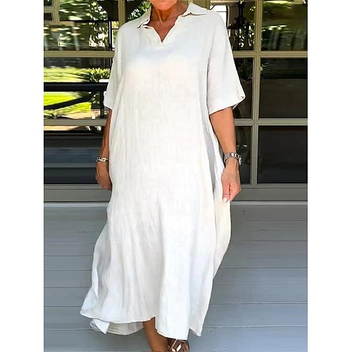 Per donna Abito lungo maxi Misto cotone Abito a Tubino Vestito Casual Abito in cotone Moda Moderno Quotidiano Weekend Vestibilità comoda Semplice Manica Corta Scollo a V Blu Rosso Cammello Viola