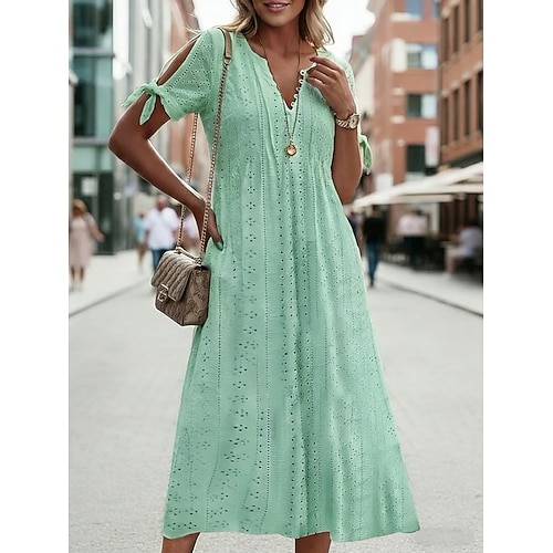 Per donna Abito Midi Abito Bianco Vestito Casual Abito Estivo Elegante Moda Moderno Casuale Quotidiano All'aperto Vestibilità comoda Semplice Manica Corta Scollo a V Blu Nero Bianco Verde chiaro