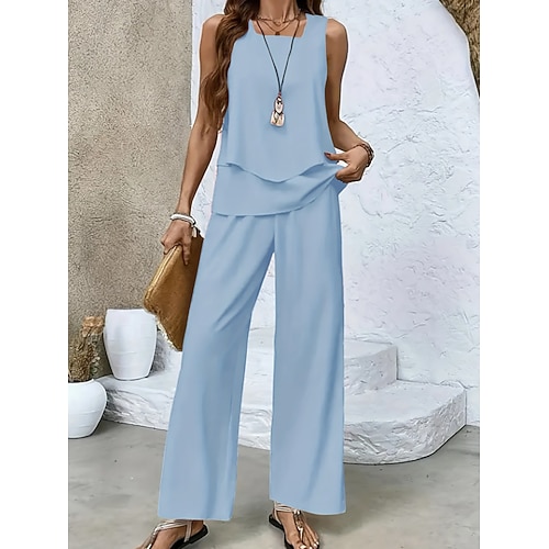 Per donna Set di Pantaloni Senza Maniche Collo quadrato Semplice Arricciato Elegante Moda Streetwear Casuale Quotidiano All'aperto Nero Rosso Beige Estate Vestibilità regolare Vestibilità comoda
