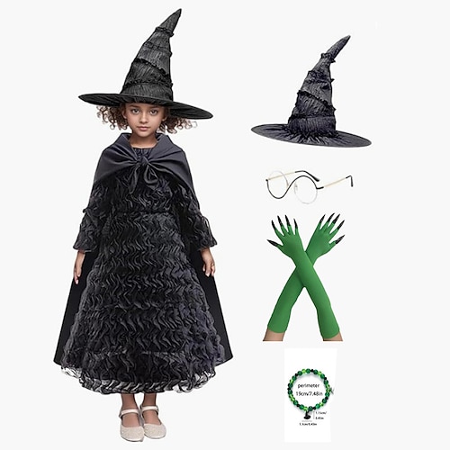 vestito da strega magica, fantasia da fiaba, strega cattiva, mantello, costume elegante, costume da cosplay con accessori per ragazze, bambini, Natale, carnevale, settimana del libro, spettacolo,