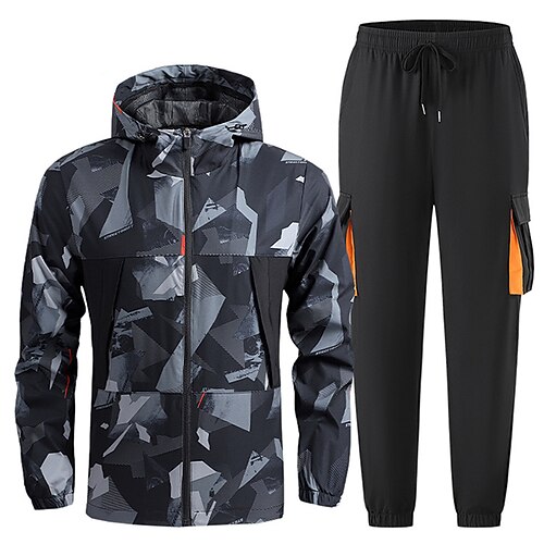 Per uomo Tuta da 2 pezzi Felpa con cappuccio Lounge Set di tute da ginnastica Con zip Stampato Completo Abbigliamento Primavera Nero Blu Palestra Allenamento Corsa Vita Alta Protezione Solare Leggero