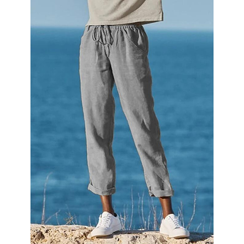 Women's Capri shorts Casual Daily Long Plain Drawstring Side Pockets Breathability Comfortable Inelastic Weekend Black Khaki Gray Spring Summer Regular Fit