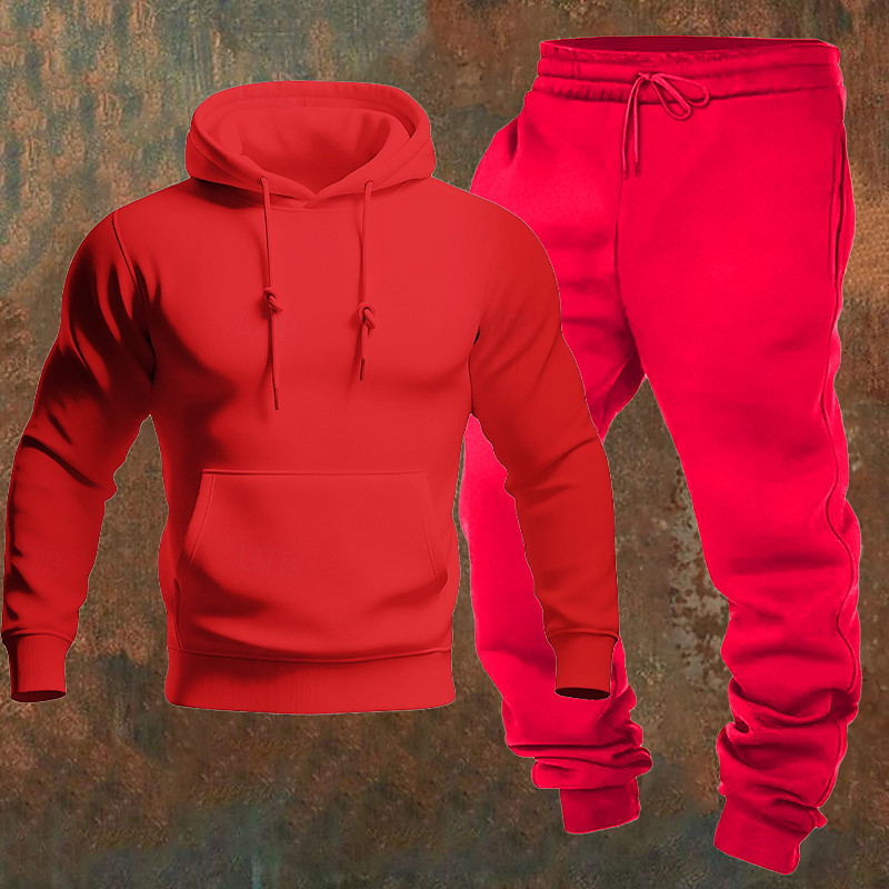 Men's Matching Sets Blue Hoodie Sweatshirt Sweatpants Joggers Trousers Sets Long Sleeve Hooded Outdoor Vacation Plain Pocket 2 Piece Polyester Spring