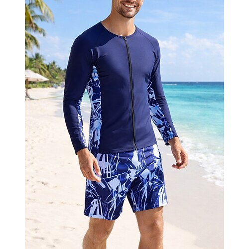 Per uomo Top sottomuta Costume da bagno 2 pezzi Tropicale Gamba lunga fino al ginocchio Protezione UV Asciugatura Rapida Elastico Manica Lunga Costume da Bagno Costume da bagno Surf Immersione