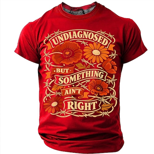 Maglietta da uomo con grafica divertente e sarcastica, stampa vintage floreale con filo spinato, umorismo autoironico, battuta sulla salute mentale, citazione, casual, maniche corte, taglie S, M, L,