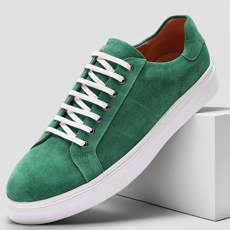 Green Men's Casual Sneakers – Lightweight Low-Top Lace-Up Shoes for Fashion, Daily Wear, Travel and Weekend Outings