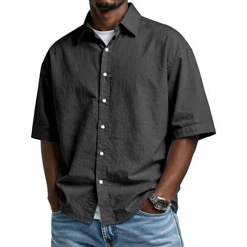 Per uomo Camicia Camicia button-down Camicia 100% cotone lavaggio acido Nero Bianco Rosa Blu marino scuro Blu reale Manica Corta Semplice Bavero Quotidiano All'aperto Bottoni Abbigliamento Streetwear