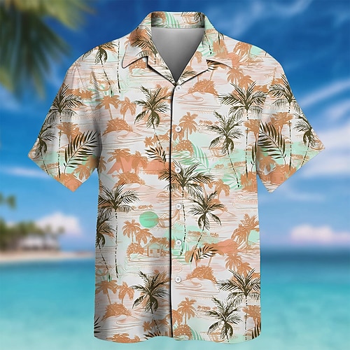 Herren Kokospalme Tropische Pflanzen Hemd Kuba-Kragen-Hemd Sommer Hawaiihemd Kurzarm Hawaiianisch Urlaub Ferien Strandbekleidung Sommer Frühling Hemd mit Camp-Kragen 3D-Druck Blau Orange Grün