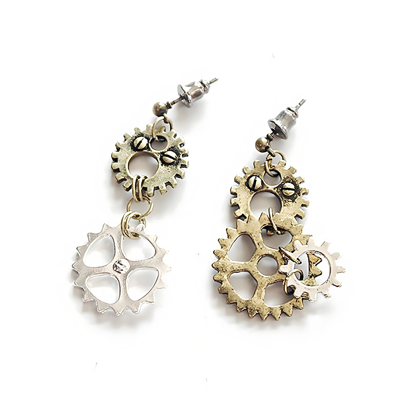 Women's Mardi Gras Multi-Style Asymmetrical Steampunk Gear Earrings - Alloy Drop Dangle for Carnival, Cosplay and Masquerade