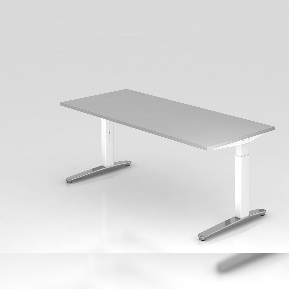 PROREGAL Schreibtisch Mika | Grau | Weißes Gestell poliert | BxT 180x80cm | Arbeitshöhe 65-85cm | höhenjustierbar, 1cm Raster | C-Fuß-Gestell