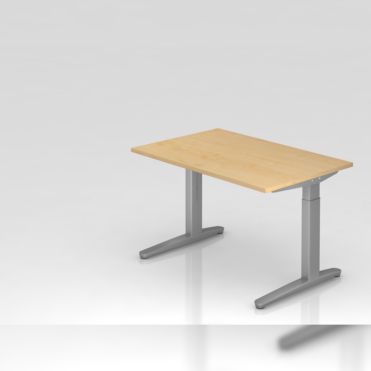 PROREGAL Schreibtisch Mika | Ahorn | Silber Gestell | BxT 120x80cm | Arbeitshöhe 65-85cm | höhenjustierbar, 1cm Raster | C-Fuß-Gestell | Bürotisch