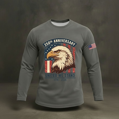 Amerikas 250. Jahrestag Herren Grafik Flagge Adler T Shirt T-Shirt Langarmshirt Langarm T-Shirt 3D-Druck Rundhalsausschnitt Hemd Mode Täglich Basic Täglich Urlaub Straße Marineblau Khaki Armeegrün
