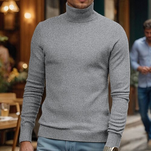 Per uomo Maglione Maglione a maglia A Coste Maglia Top Regolari Lavorato a maglia Semplice Dolcevita Moda Essenziale Vacanza Abbigliamento quotidiano Abbigliamento Autunno Inverno Cammello Vinaccia S