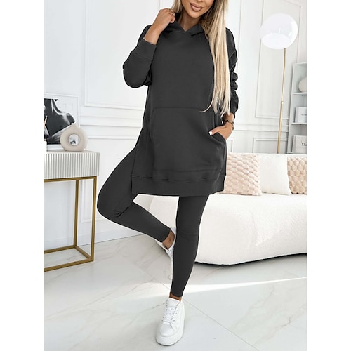 Per donna Moda Streetwear Set di Pantaloni Bolero Top Manica Lunga Con Cappuccio Tinta unica All'aperto Casuale Quotidiano Nero Rosa Rosso Autunno Vestibilità regolare