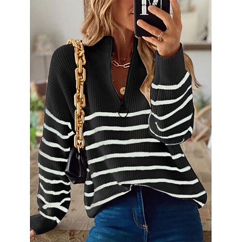 Per donna Felpa pullover Top casual Manica Lunga Top Athleisure Autunno A righe Di tendenza All'aperto Viaggio abbigliamento sportivo Abbigliamento sportivo Nero Bianco Rosso