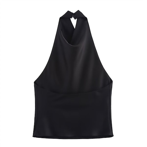 Per donna Camicia Elegant Raso/Satin Blusa Semplice Elegante Vintage Tropicale Senza Maniche All'americana Top Regolari Quotidiano Lavoro Ferie Arricciato Patchwork Drappeggiato Nero Bianco Giallo