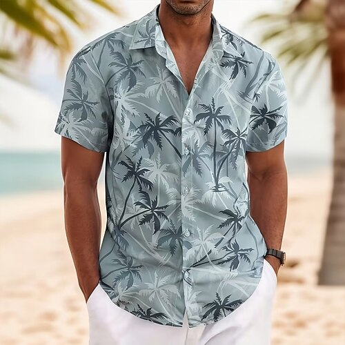 Per uomo Albero di Cocco Piante Tropicali Camicia hawaiana estiva Camicia con Bottoni Camicia Aloha Manica Corta Hawaiano Vacanza Abbigliamento mare Estate Primavera Collo ripiegato Stampa 3D camicie