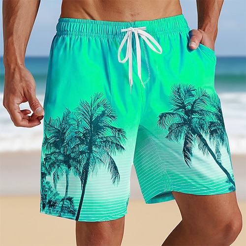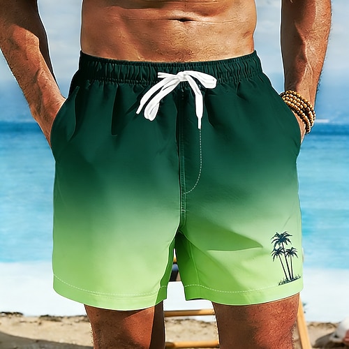 Per uomo Sfumatura Albero di Cocco Costumi da bagno Pantaloncini da mare Pantaloncini da Surf Misura del girovita medio Moda Streetwear Designer Casuale Quotidiano Ferie Tasca Coulisse Elastico in