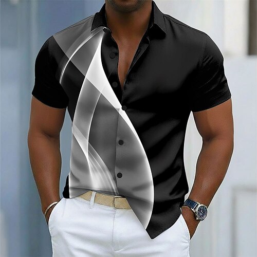Herren Farbverlauf Linien / Wellen Abstrakte Kunst Hemd Knopfhemd Lässiges Hemd Kurzarm Modisch lässig Streetwear Urlaub Frühling Herbst Umlegekragen 3D-Druck Hemden mit Kragen Blau Rote Purpur Grün