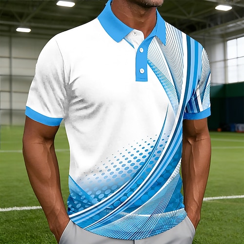 Herren Geometrisch Linie Poloshirts Kurzarm Polo-Shirts Hemden mit Kragen Lässig Athleisure 3D-Druck Knöpfe Frühling Sommer Blau Rote Purpur