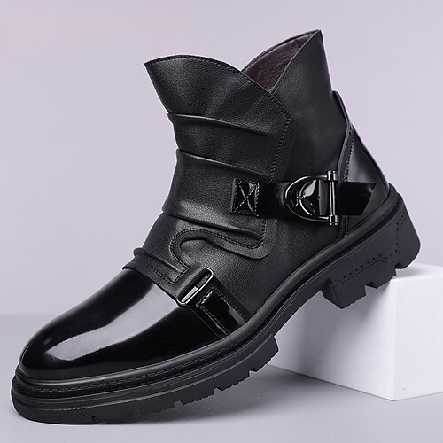 stivali da uomo in similpelle marrone con cinturino – design alla moda con dettagli in fibbia, perfetti per uscite informali, moda invernale e abbigliamento outdoor