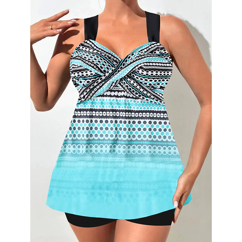 Women's Tankini 2 Piece Swimsuit Shorts Tummy Control High Waist Slim Backless Vacation Beach Wear Ombre Graphic V Neck Sleeveless Bathing Suits