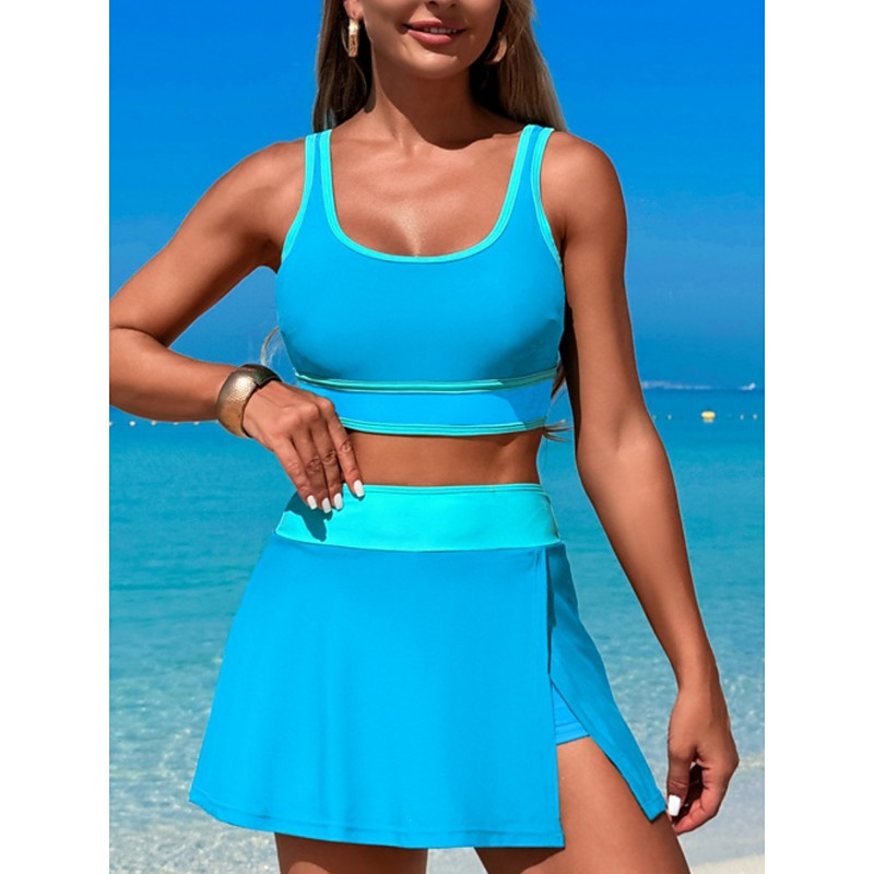 Women's Tankini 2 Piece Swimsuit Colorblock Shorts Tummy Control High Waist Slim Backless Vacation Beach Wear Floral U Neck Sleeveless Bathing Suits