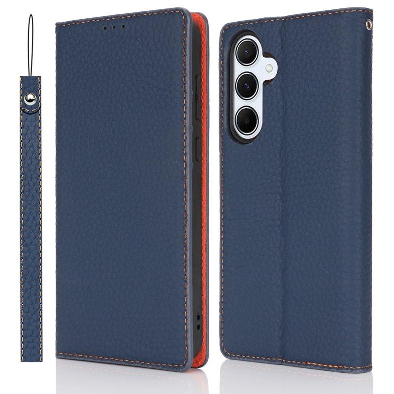 Samsung Galaxy A55 5G Plånboksfodral Äkta Läder Litchi Textur - Blå