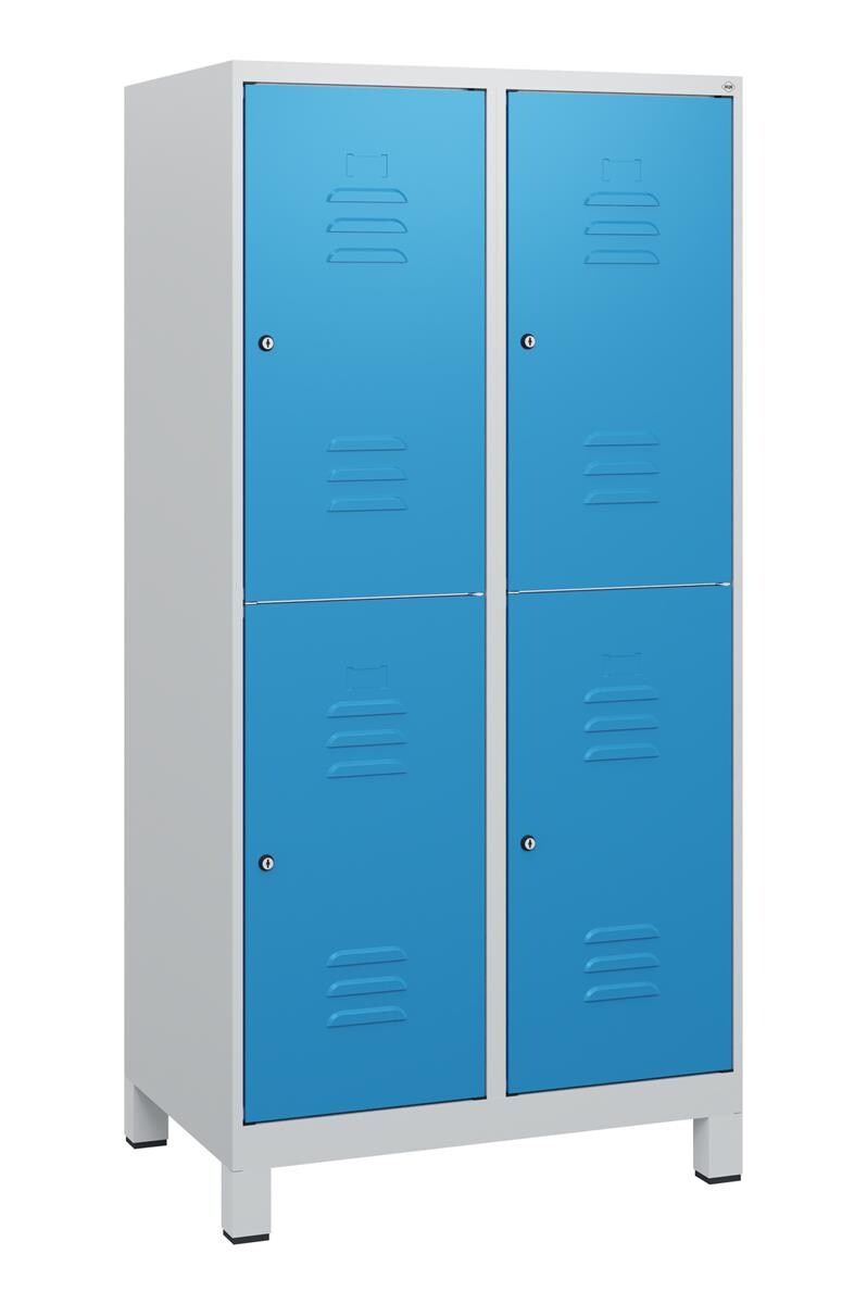 C+P Spind Classic PLUS, Füßen, 4 Abteile, HxBxT 195x120x50cm, Zylinderschloss, Hellgrau/Hellgrau von PROREGAL