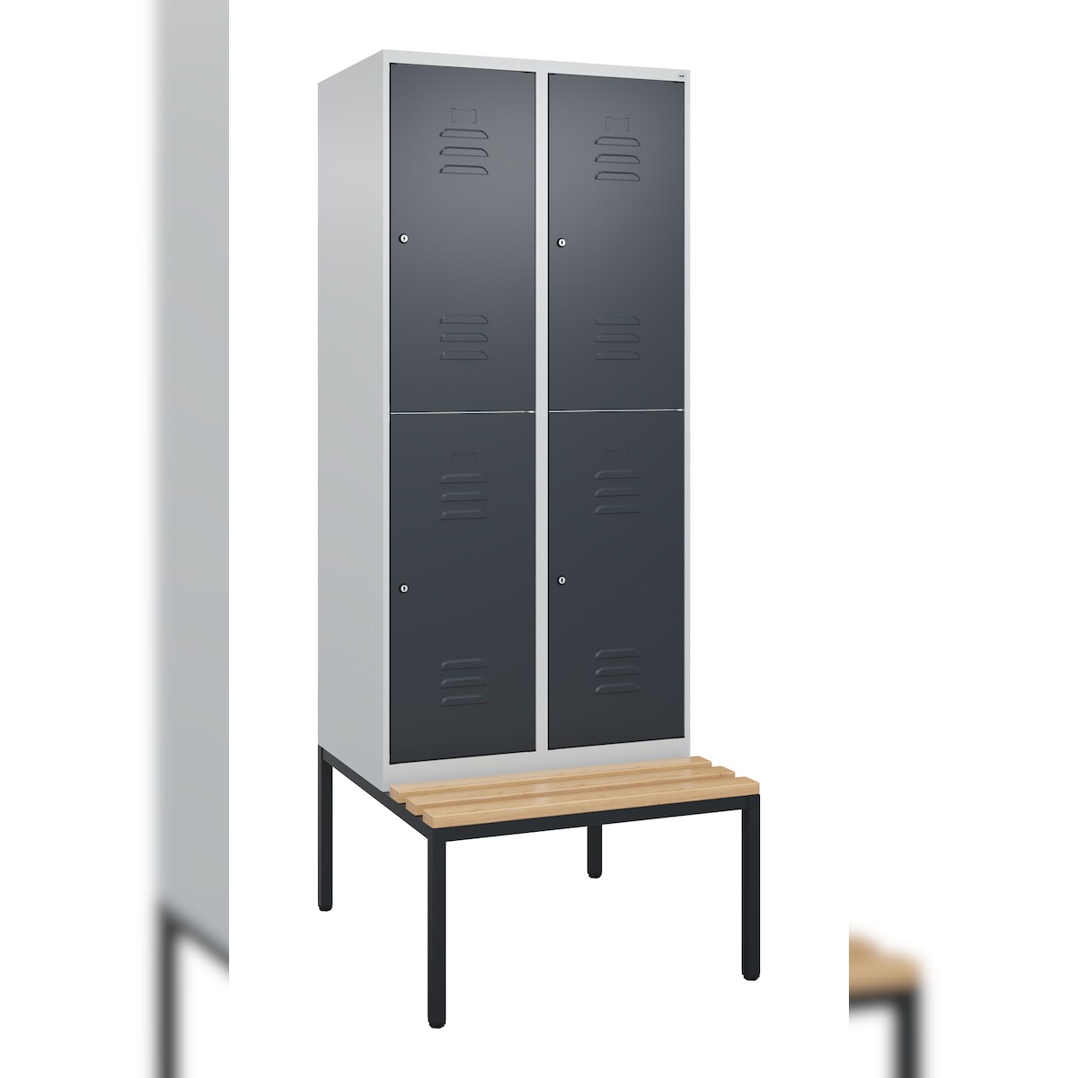 C+P Spind Classic PLUS, Buche untergebaute Sitzbank-Harthol, 4 Abteile, HxBxT 212x80x82cm, Zylinderschloss, Hellgrau/Anthrazit von PROREGAL