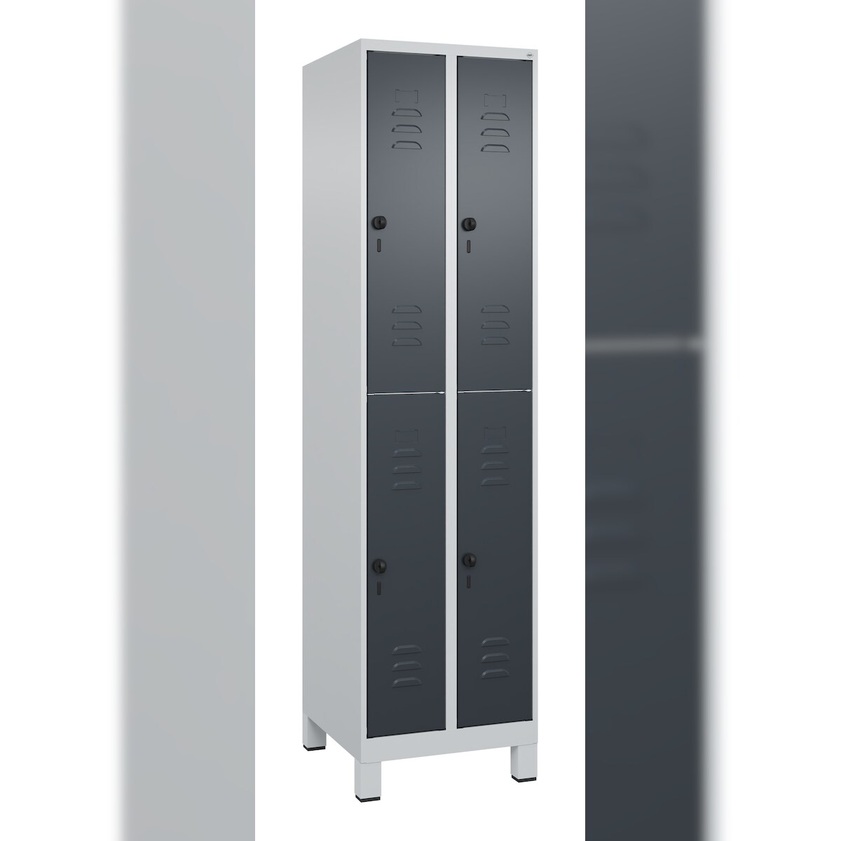 C+P Spind Classic PLUS, Füßen, 4 Abteile, HxBxT 195x50x50cm, Sicherheitsdrehriegel, Hellgrau/Anthrazit von PROREGAL