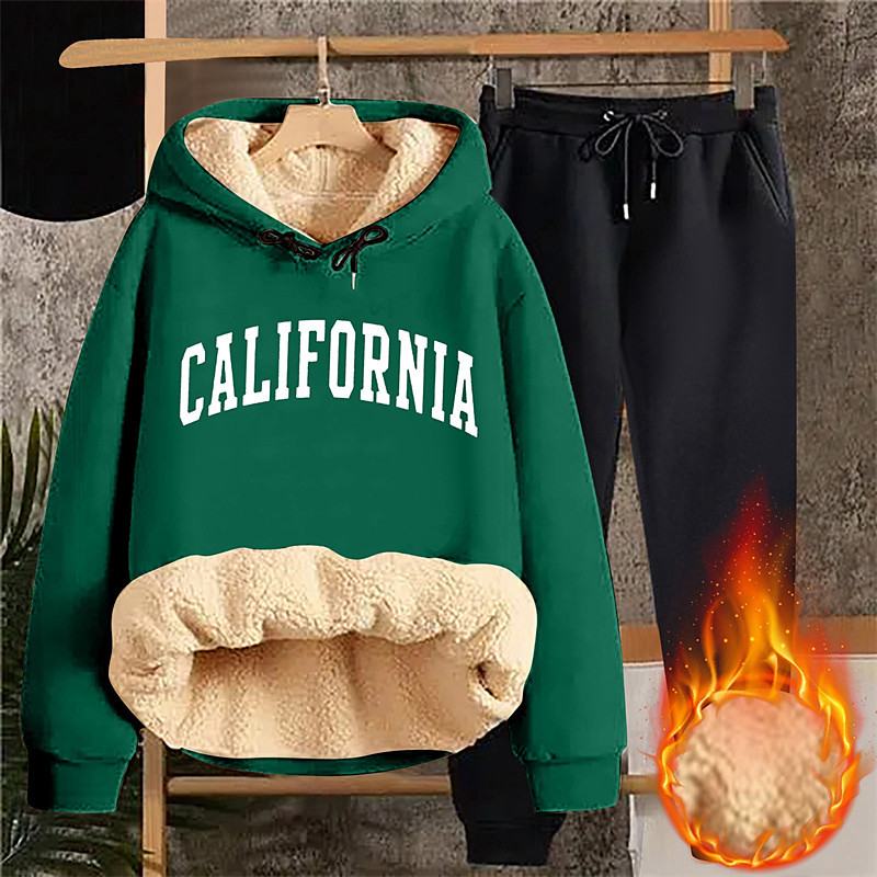 Women's Warm Daily Two Piece Sets Tracksuit Pants Sets Long Sleeve Hooded Graphic Letter Drawstring Print Casual Daily Black Pink Dark Pink Fall Regular Fit