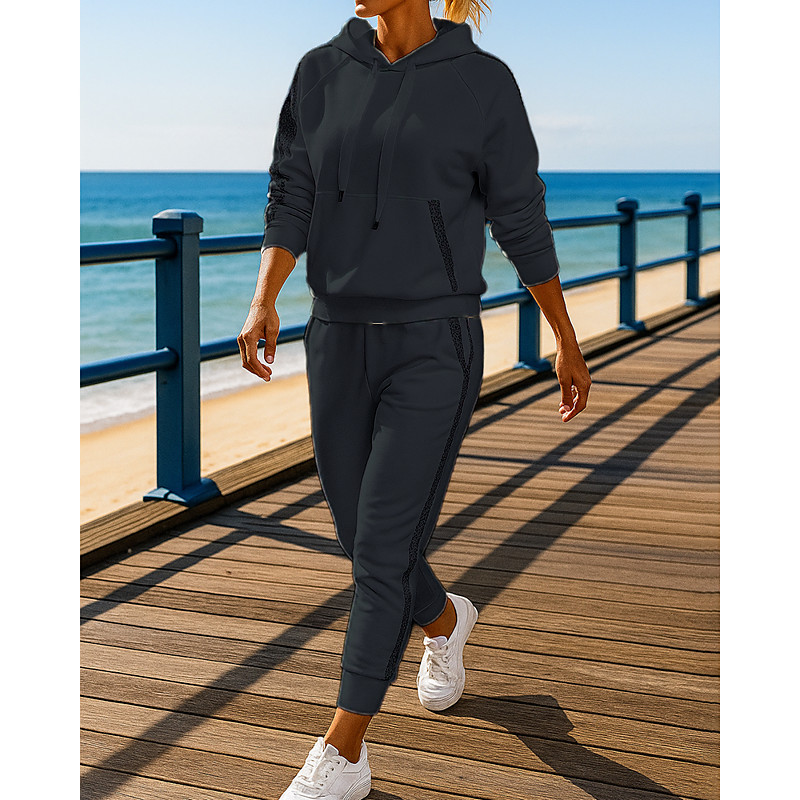 Women's 2 Piece Tracksuit Lounge Hoodie Sweatsuit Sets Pocket Solid Colored Clothing Suit Fall Black White Outdoor Travel Sports Moisture Wicking Long Sleeve Sport Activewear Micro-elastic Regular Fit