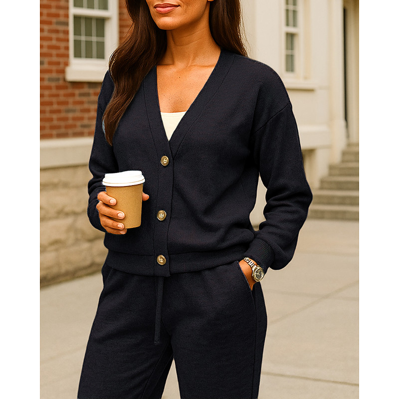 Women's Lounge Sweatsuit Sets Knitted Cardigan Set 2 Piece Tracksuit Button Solid Colored Clothing Suit Fall Black Blue Spandex Hiking Vocation Outdoor Long Sleeve Sport Activewear Micro-elastic