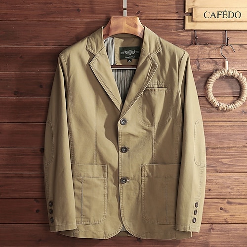 Da uomo Giacca Leggera Casuale Casual Primavera Autunno Inverno Cotone Tinta unica Monopetto Un Bottone Giacca Nero Kaki Verde militare