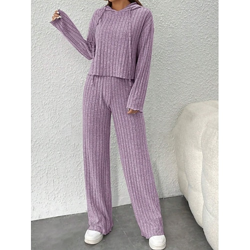 Per donna Moda Streetwear Set di Pantaloni Bolero Top Manica Lunga Con Cappuccio Tinta unica All'aperto Lavoro Casuale Nero Viola Verde Autunno Vestibilità comoda