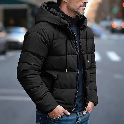 Per uomo Cappotto Invernale Giacca imbottita Imbottito Tasca Poliestere All'aperto Casuale Quotidiano Regolare Moda Streetwear Calore Termico Inverno Tinta unica Blu Grigio scuro Nero Piumino