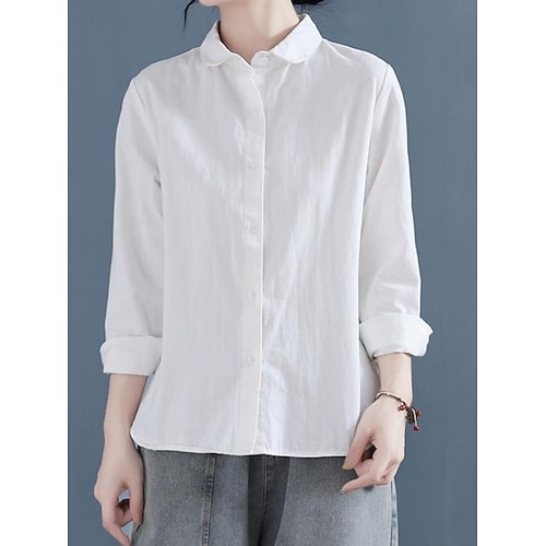 Per donna Blusa Tinta unica Elegante Classico Casual Manica Lunga Colletto a Camicia Top Regolari Quotidiano Bottoni Blu Nero Bianco Rosa Verde Primavera Autunno