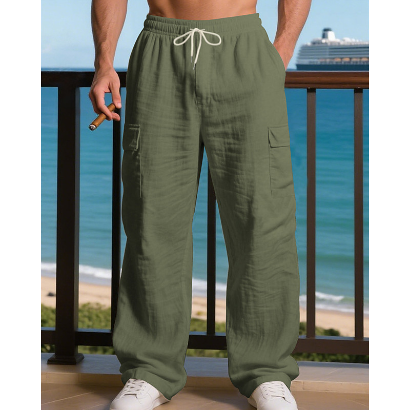 Men's Linen Pants Trousers Summer Pants Baggy Pants Beach Pants Drawstring Elastic Waist Solid Color Comfort Breathable Daily Outdoor Beach Vacation Fashion Light Khaki Black Inelastic