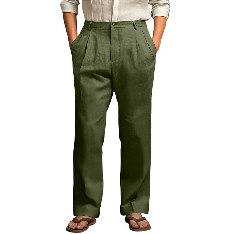 Men's Linen Pants Trousers Summer Pants Baggy Pants Elastic Waist Pleats Straight Leg Plain Comfort Breathable Full Length Outdoor Daily Holiday Vacation Fashion Black White Inelastic