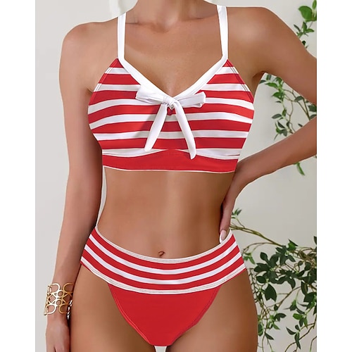 Per donna Costumi da bagno Due pezzi Birichino Costume da bagno Senza schiena Vacanza Abbigliamento da Spiaggia A righe Scollo a V Senza Maniche Costumi da bagno