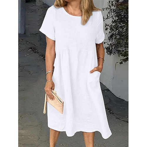Per donna Bianco Rosa Blu marino Estate Primavera Vestito longuette Vestito bianco Abito casual Abito in cotone e lino Essenziale Moderno Giornaliero Fine settimana Morbido Liscio Girocollo