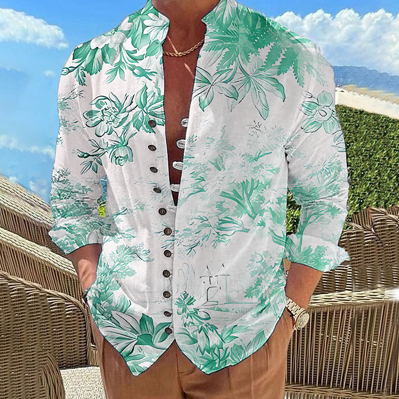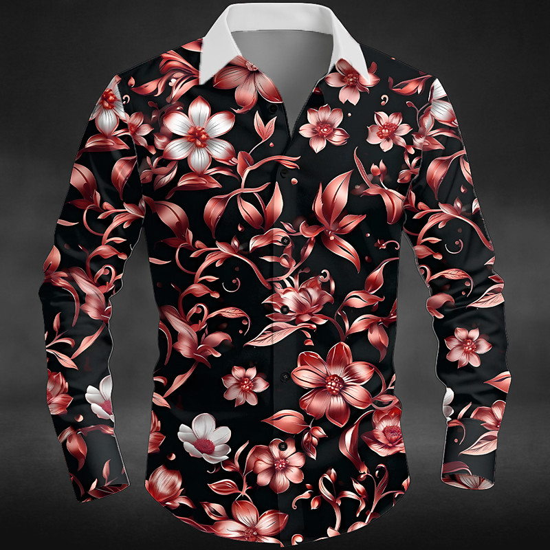 Men's Floral Shirt Button Up Shirt Long Sleeve Fashion Designer Casual Vacation Daily Going out Fall Autumn / Fall Spring Summer Stand Collar Print Red Blue Purple Green