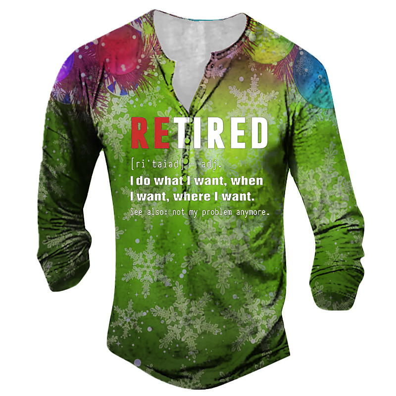 Christmas Retirement Sweater Mens Graphic Shirt Tee Henley Snowflake Yellow Blue Purple Fuchsia Green 3D Print Outdoor Long Sleeve Snowflakes Colorful What Want When Where See Also Not My Problem Anym